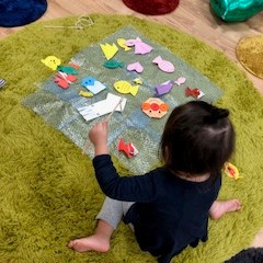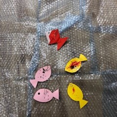 2018.12.05 行事のこと さかなつり 今日はさかなつりをしました! 画用紙や折り紙を使って作った魚に目や模様などを書きました。 魚だけではなく他にもイカなども作っていざ釣ります! なかなか釣れなかったのですが、徐々にコツをつかんで上手くなりました(^^) 魚が釣れたら「イエーイ!」と大喜びしながらさかなつりを楽しみました♪ ←初挑戦&おにぎり作りクッキング→