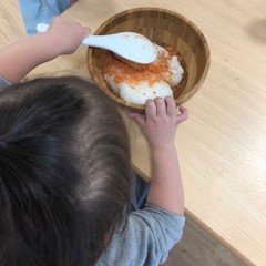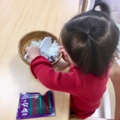 2018.11.29 日常のこと 初挑戦&おにぎり作り 今日はよく行く公園にある滑り台の橋に挑戦しました! 足と手を上手に使って登っていくAちゃん。 以前は途中で諦めてしまうこともありましたが、今日は最後まで頑張りました(^^) 保育園に帰ってからは、おにぎり作り。 今日は鮭おにぎりを作りました。先日はゆかりのおにぎりも作りましたよ(^^) 「まぜまぜ」といいながら上手に混ぜてくれました(^^) 混ぜた後は自分で握ります。 上手に握れました♪ おにぎりも給食もモリモリ食べて元気いっぱいです! ←12月度 もふもふ便りと献立表さかなつり→