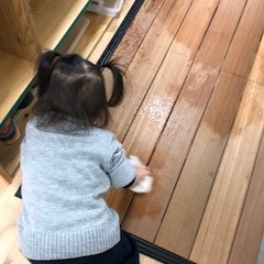 2018.12.27 日常のこと 2018年最後の保育園 今日で保育園納めということで、みんなで大掃除をしました! 新しく保育園がオープンして2カ月ほどですが、床、棚、窓など 「いつもありがとう」という気持ちを込めてピカピカに磨きました(^^) Aちゃんも積極的に入り口を拭き拭き。 とってもきれいになりました!! 明日から少しの間保育園はお休みです。 年明け、元気なみんなに会えるのを楽しみにしています♪ 楽しいお正月、そしてよいお年をお迎えください。 2019年もよろしくお願い致します! ←1月 もふもふ便りと献立表プチ遠足→
