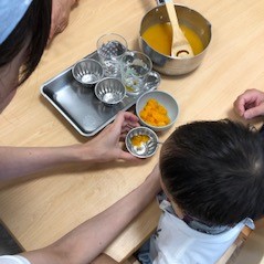 2019.07.26 行事のこと クッキング 先日、クッキングでゼリーを作りました! みかん味のゼリーを作るのに、自分たちでカップの中に みかんを入れました!! 二人ともみかんだけで”たべたーい!!”という顔をしていましたが食べられず…笑 ゼリーにジュースを入れて固まるまでちゃんと待ちました(^^) おやつに待ちに待ったゼリーを食べれてとても幸せそうでした♪ ←7月 もふもふ便りと献立表8月 もふもふ便りと献立表→